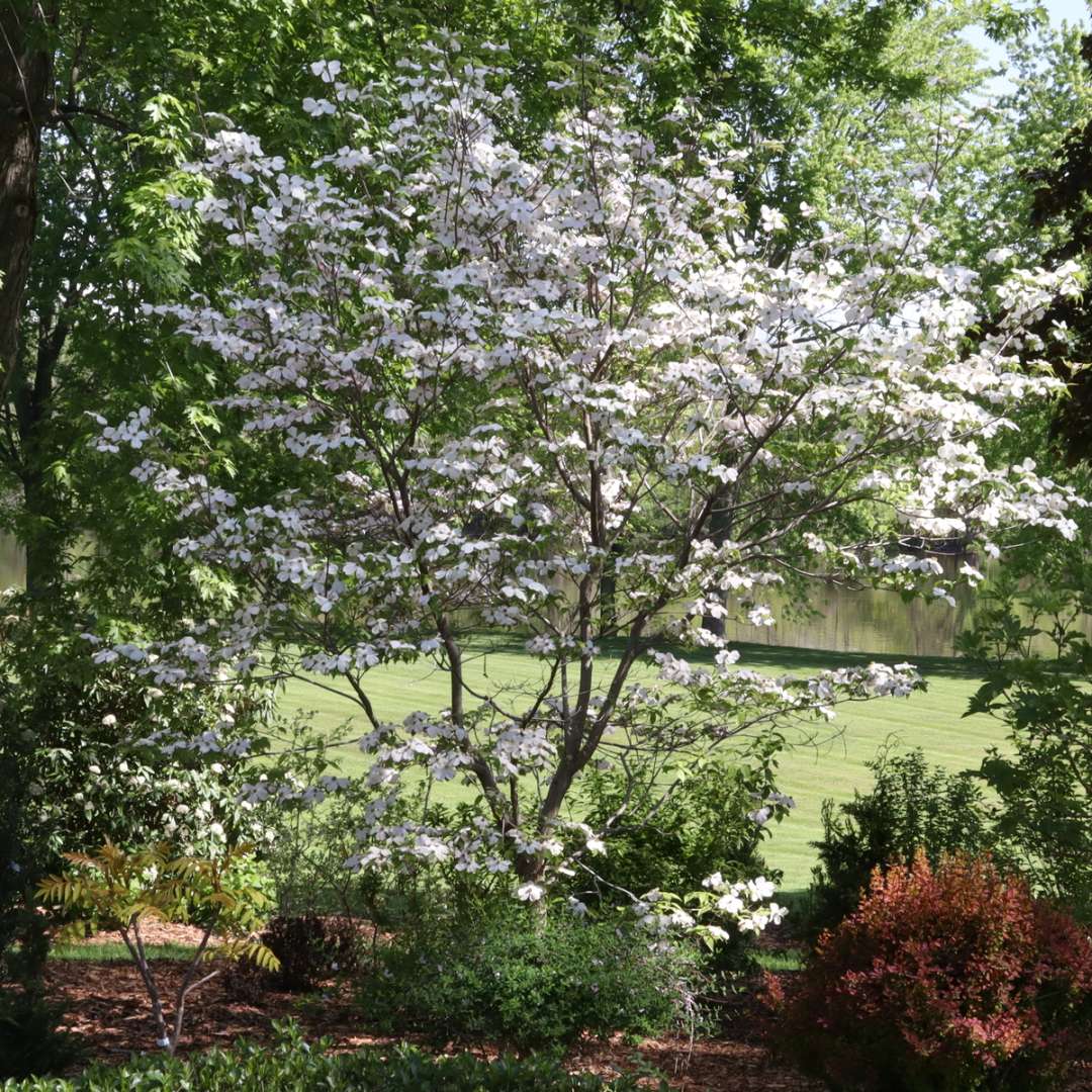 Filters: Botanical genus: Cornus, Common name: Flowering dogwood, Retail program: Proven Winners® Trees, USDA Zone 5, USDA Zone 6, USDA Zone 7, USDA Zone 8, USDA Zone 9, Exposure: Full sun, Exposure: Part sun, Bloom time: Spring, Pink flowers, White flowers, Green foliage, Red foliage